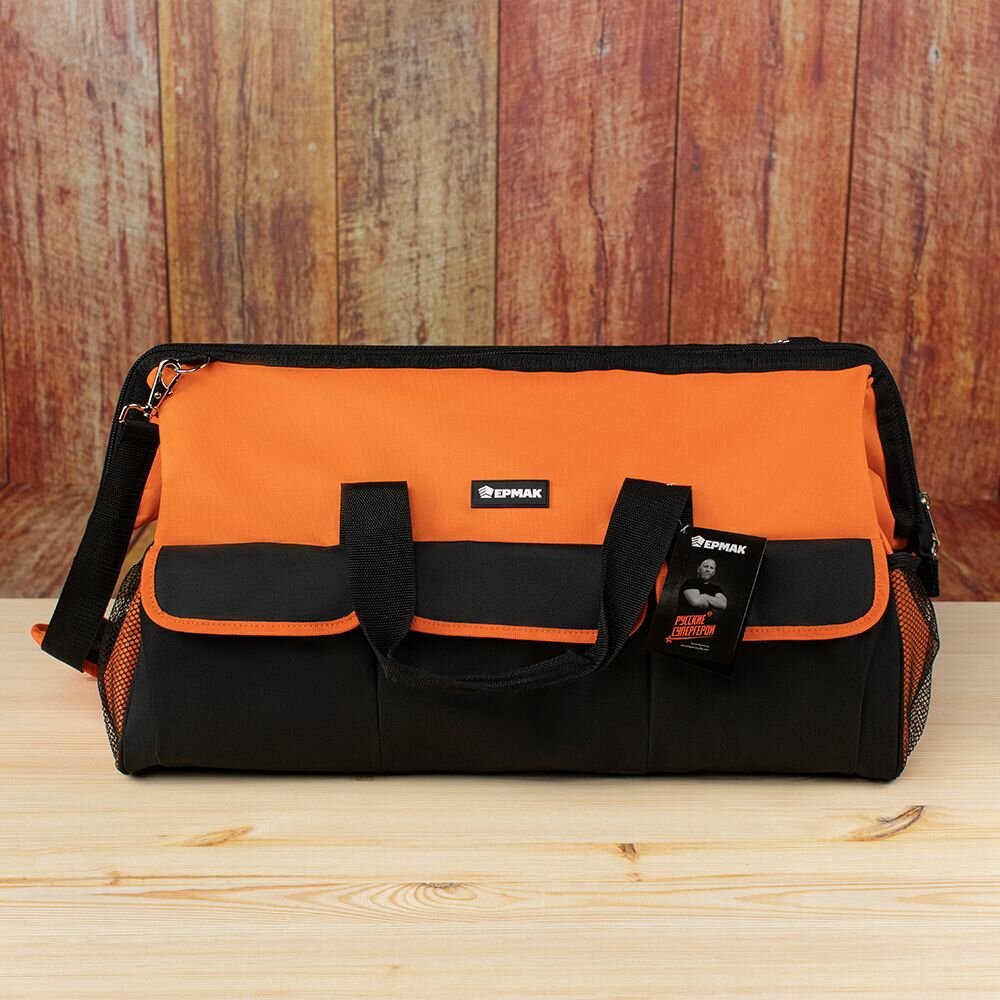 Купить Сумка для инструмента большая с ремнем ермак, органайзер для хранения инструмента, 25 карманов, 61х30х25 см