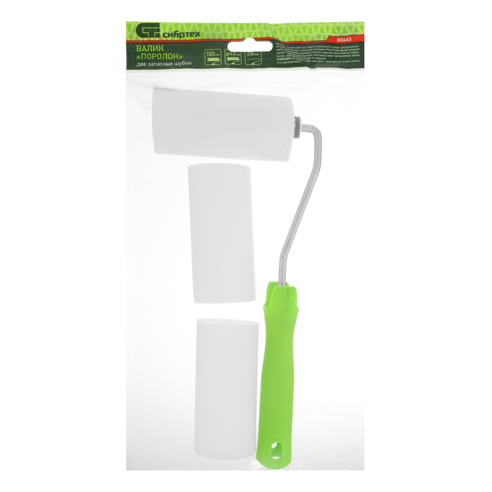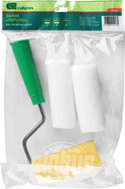 Валик "Поролон" с ручкой и 2 шубки 100 мм, D 42 мм, D ручки 6 мм Сибртех