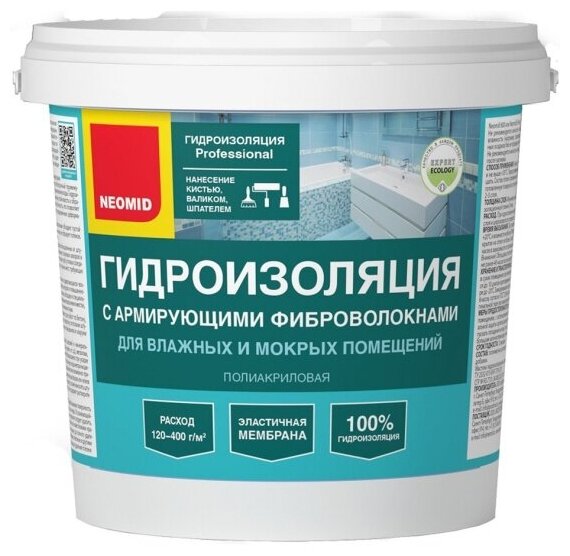 Гидроизоляция с армирующими фиброволокнами Neomid (1,3 кг) / для душевой, туалета и ванной