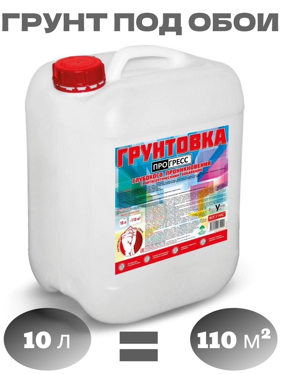 Грунтовка для стен 10 л прогресс акриловая универсальная глубокого проникновения