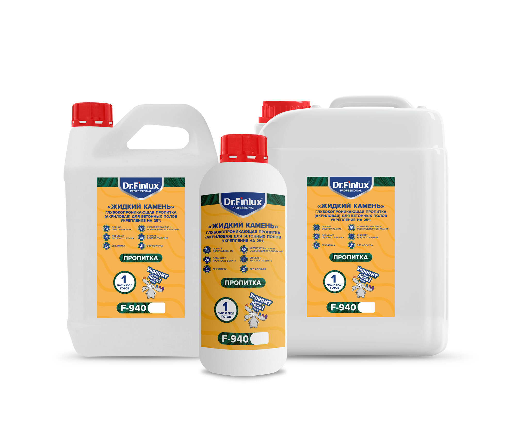 Укрепляющая и обеспыливающая водоотталкивающая пропитка для бетона, бетонного пола Dr. Finlux F-940 "Жидкий камень" 5 кв.м.