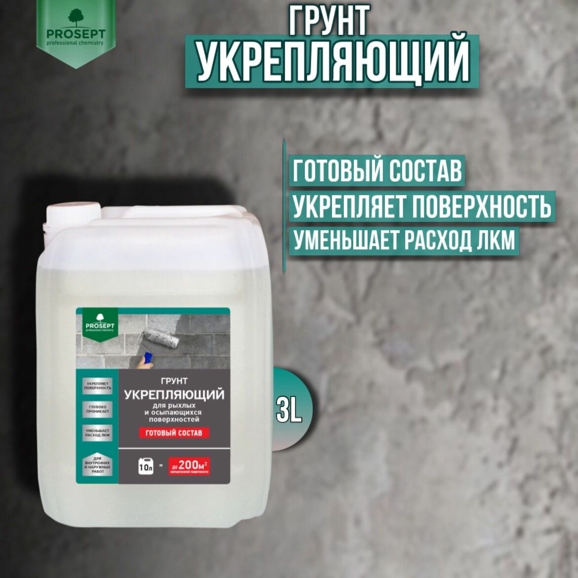 PROSEPT Грунт укрепляющий, для рыхлых и осыпающихся поверхностей, 3 л