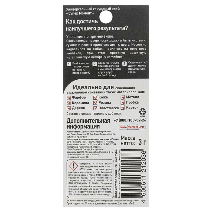 Ниже Вы можете прочитать отзывы на Клей Супер момент секундный 3гр. 1 шт., ознакомится с подробными характеристиками, посмотреть интересные обзоры и фотографии на Клей Супер момент секундный 3гр. 1 шт..