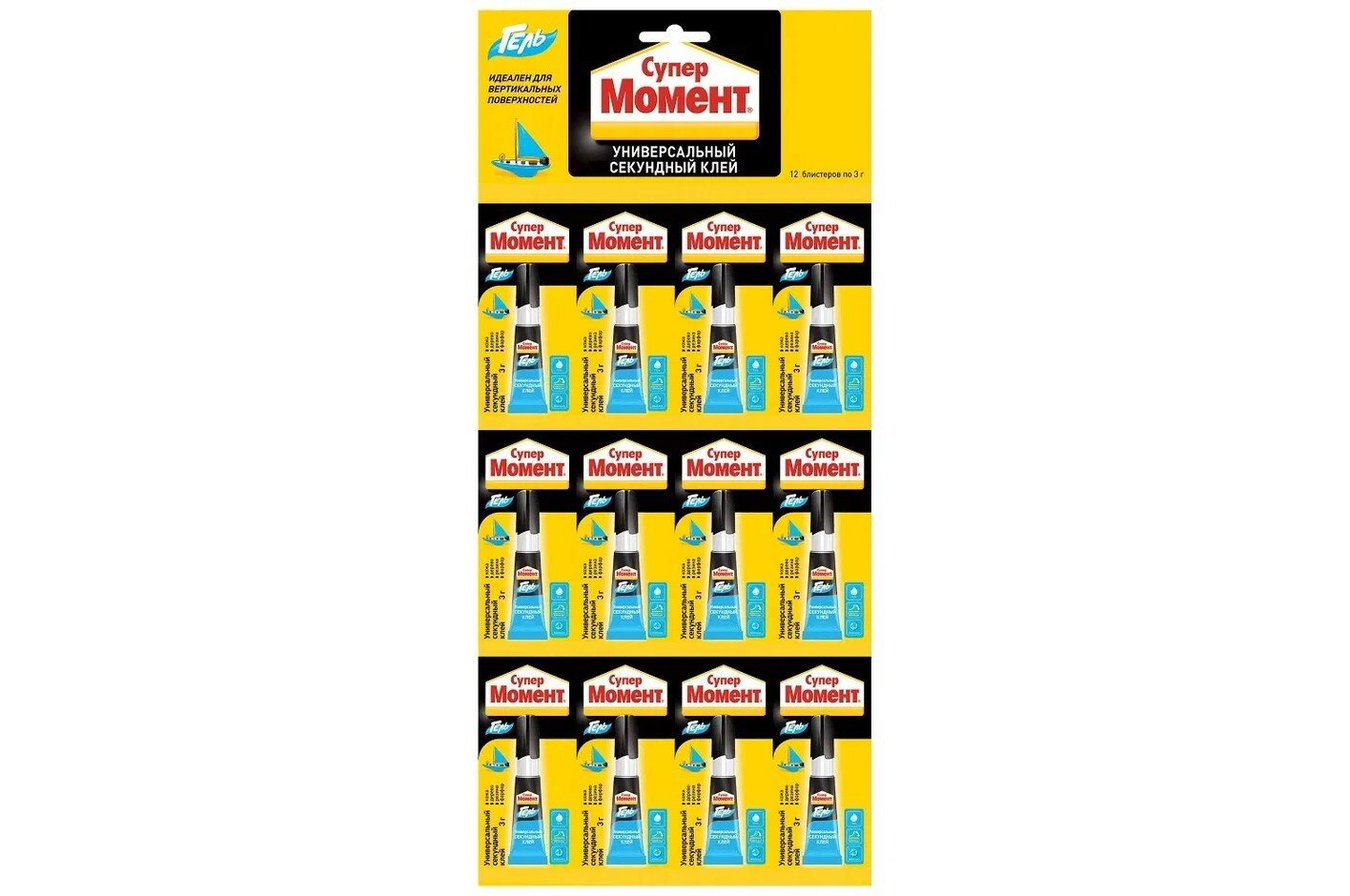 Клей универсальный Момент Супер-гель, 3г, блистер (622917), 12шт.