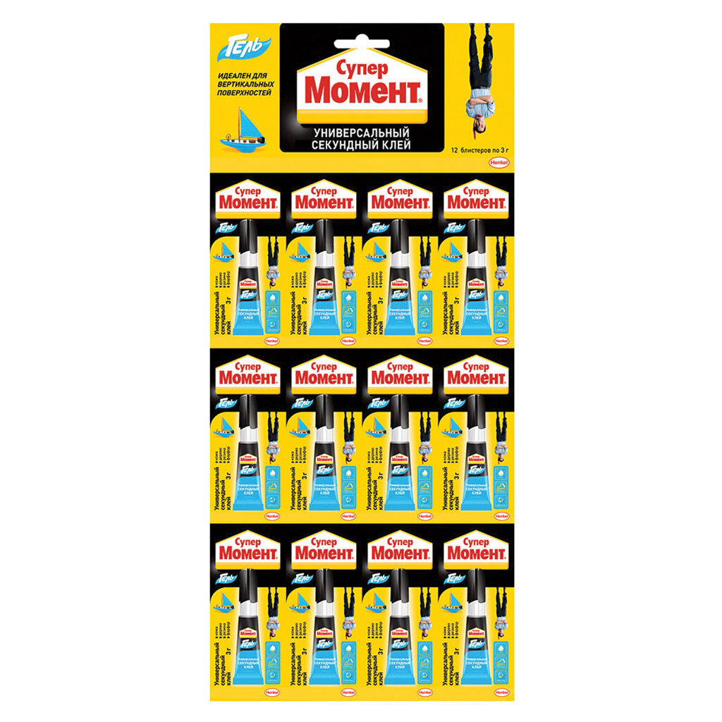 Клей универсальный Момент Супер-гель, 3г, блистер (622917), 12шт.