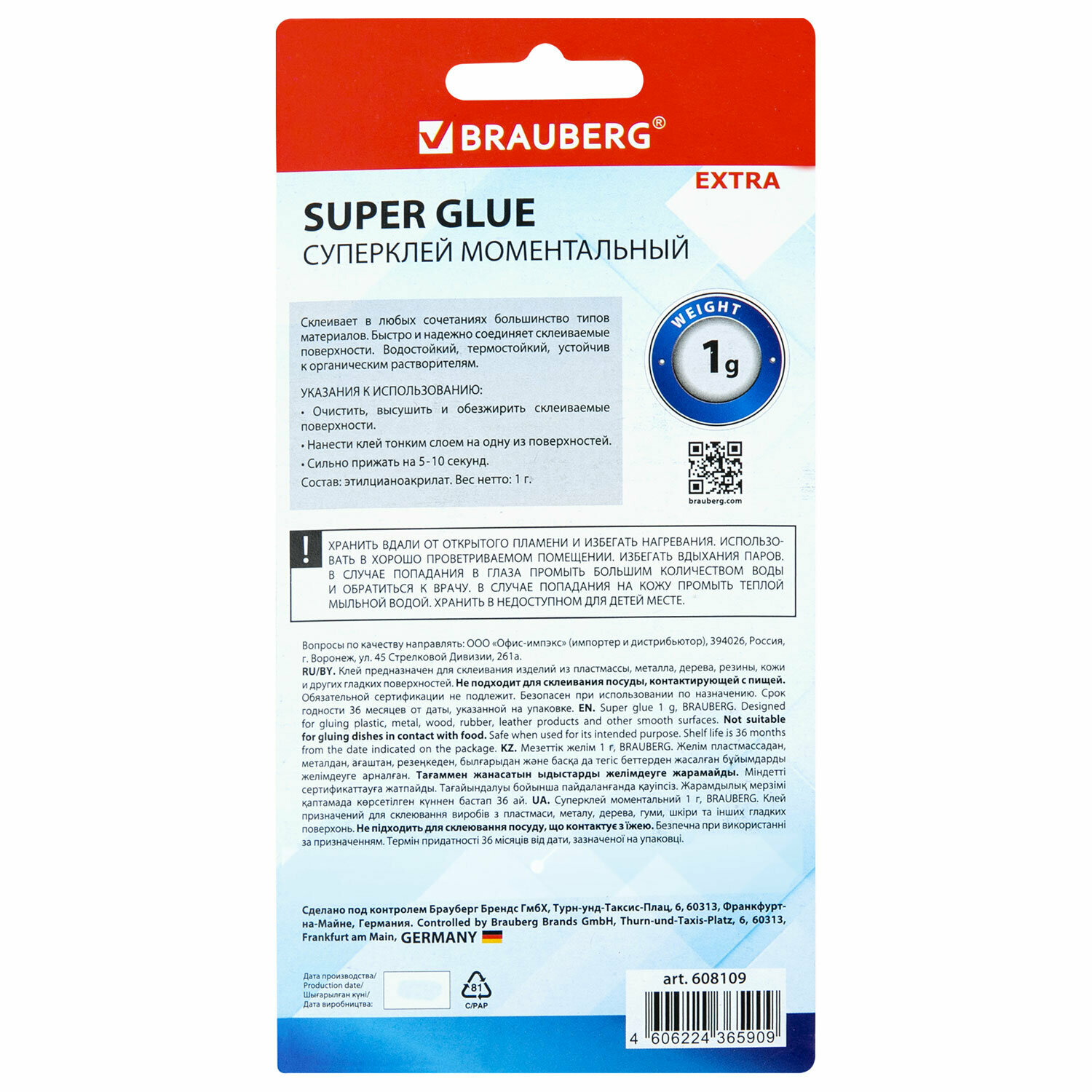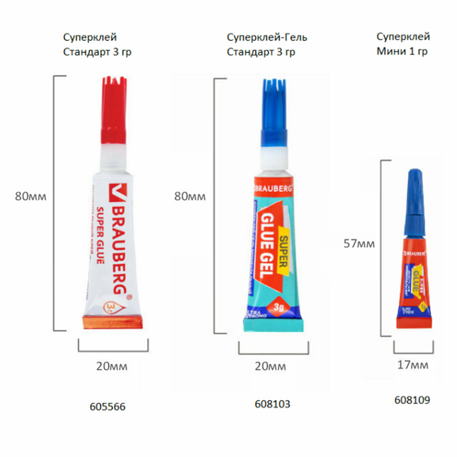 Клей-Гель моментальный 3 шт. по 3 г + Суперклей 3 шт. по 3 г, набор 6 тюбиков, BRAUBERG EXTRA, 608108