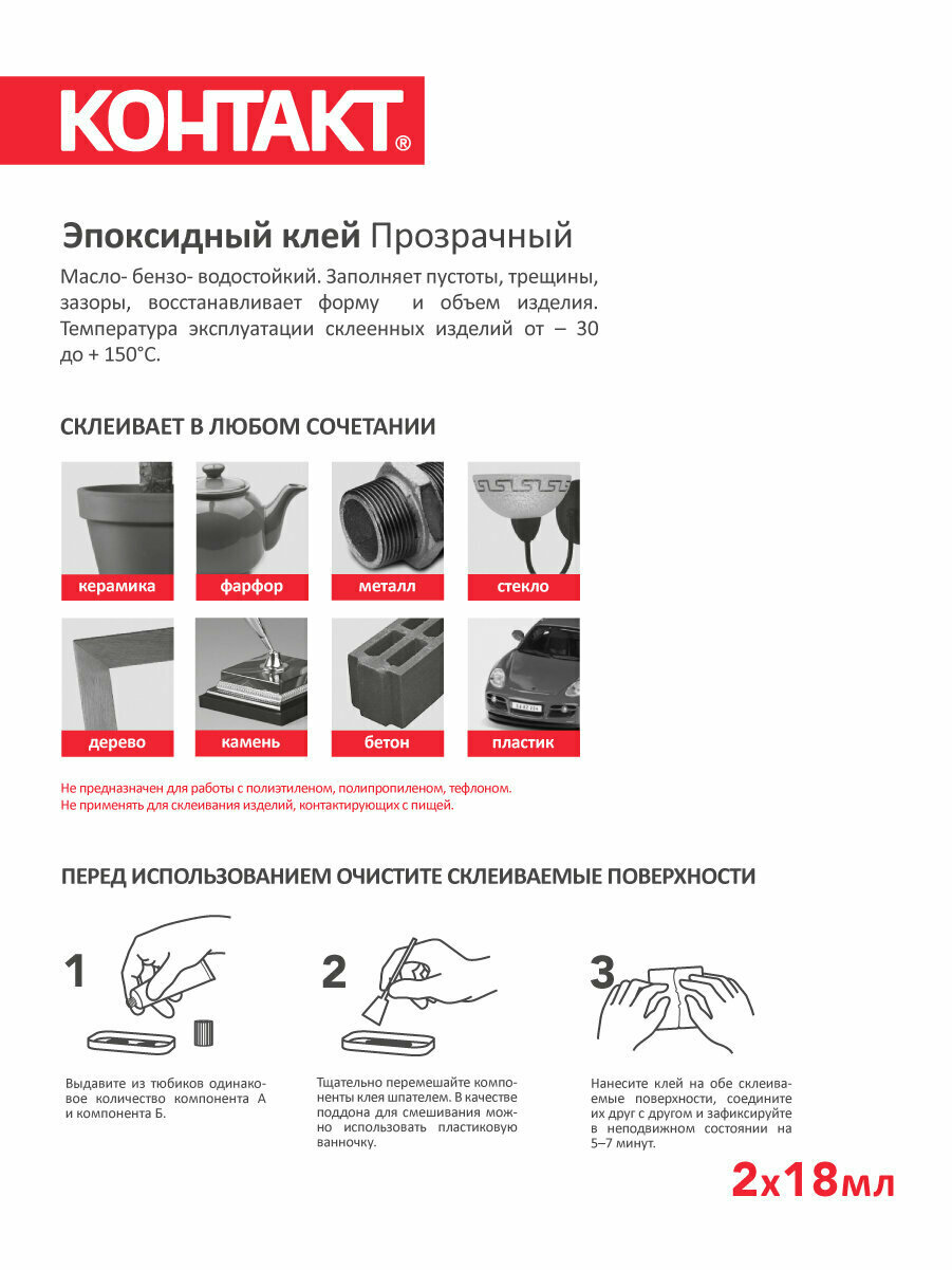 Купить Другие товары 12 контакт Клей Эпоксидный Контакт Прозрачный 2х18мл, пластик.пенал для хранения, КЭ 144 - Б36