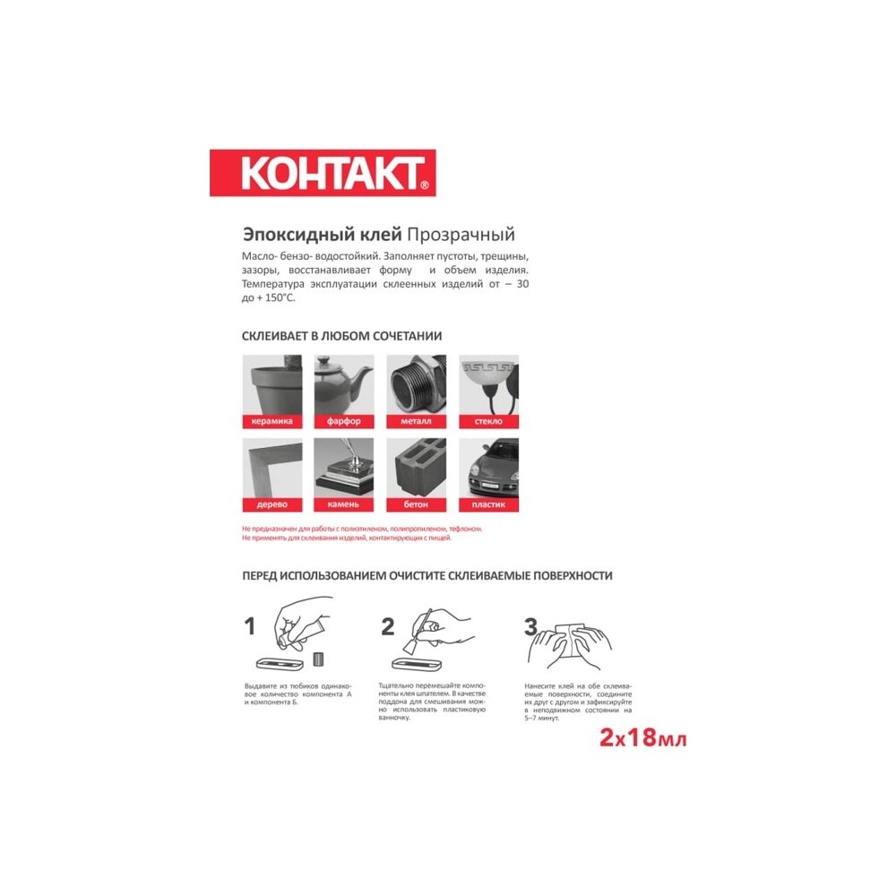 Эпоксидный клей контакт прозрачный 2х18 мл.