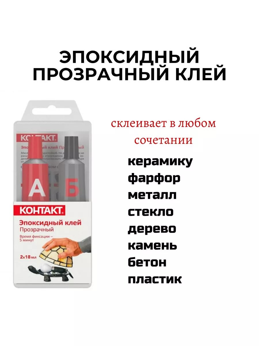 Эпоксидный двухкомпонентный клей контакт 6мл Прозрачный