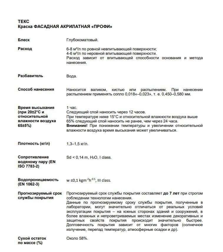 Фасадная акрилатная краска Текс профи