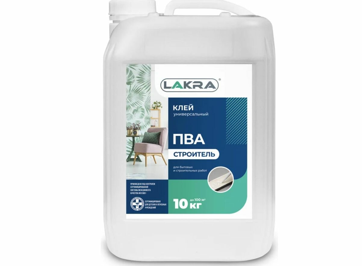 Купить Клей ПВА Лакра универсальный Строитель (канистра) 10кг Л-С