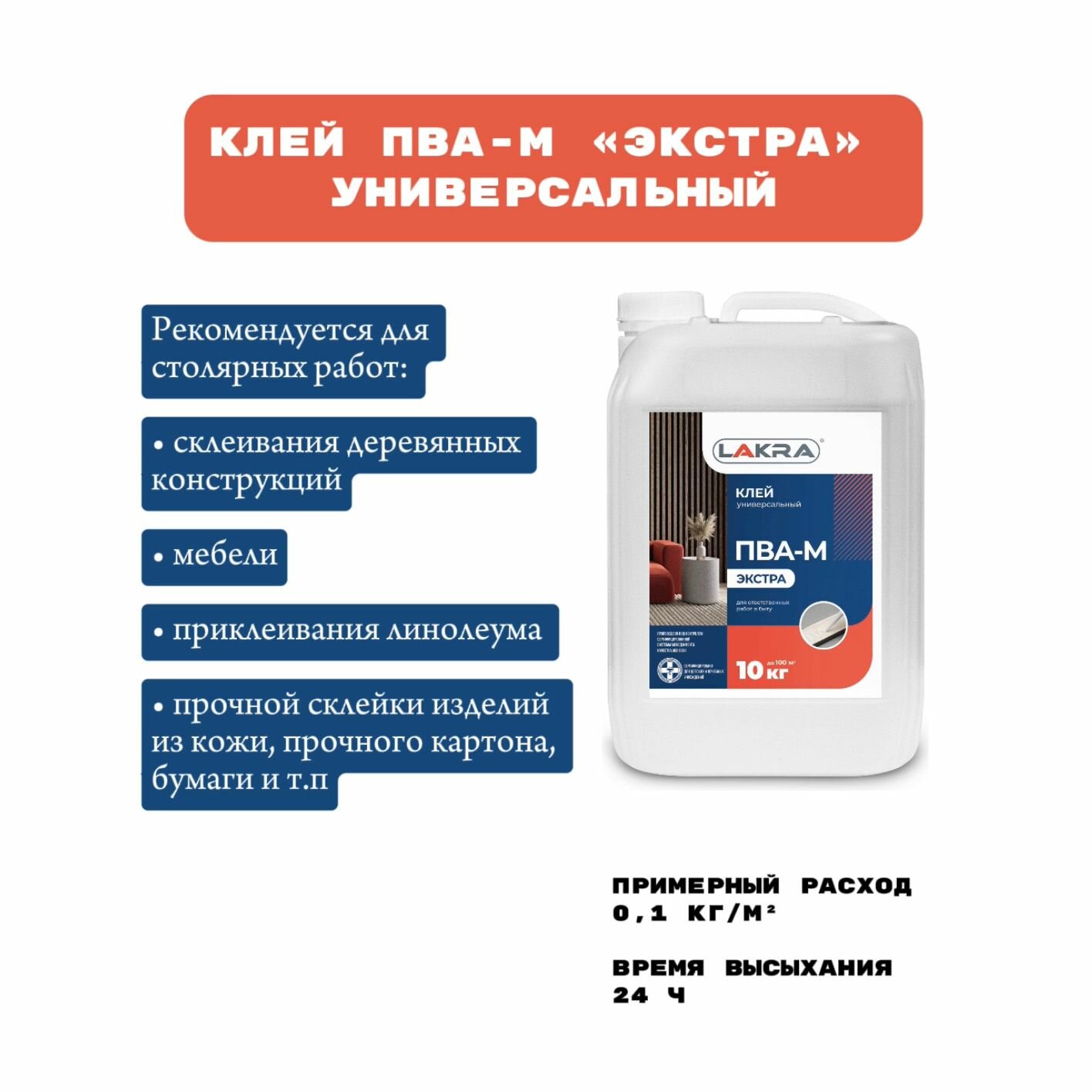 Купить Клей ПВА-М универсальный экстра "Лакра" (10кг)