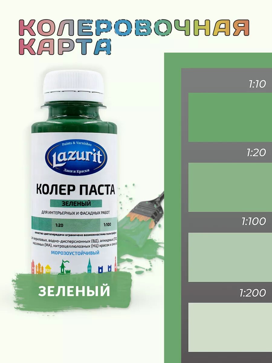 Ниже Вы можете прочитать отзывы на Колер-паста LAZURIT зеленый 100 мл/1шт, ознакомится с подробными характеристиками, посмотреть интересные обзоры и фотографии на Колер-паста LAZURIT зеленый 100 мл/1шт.