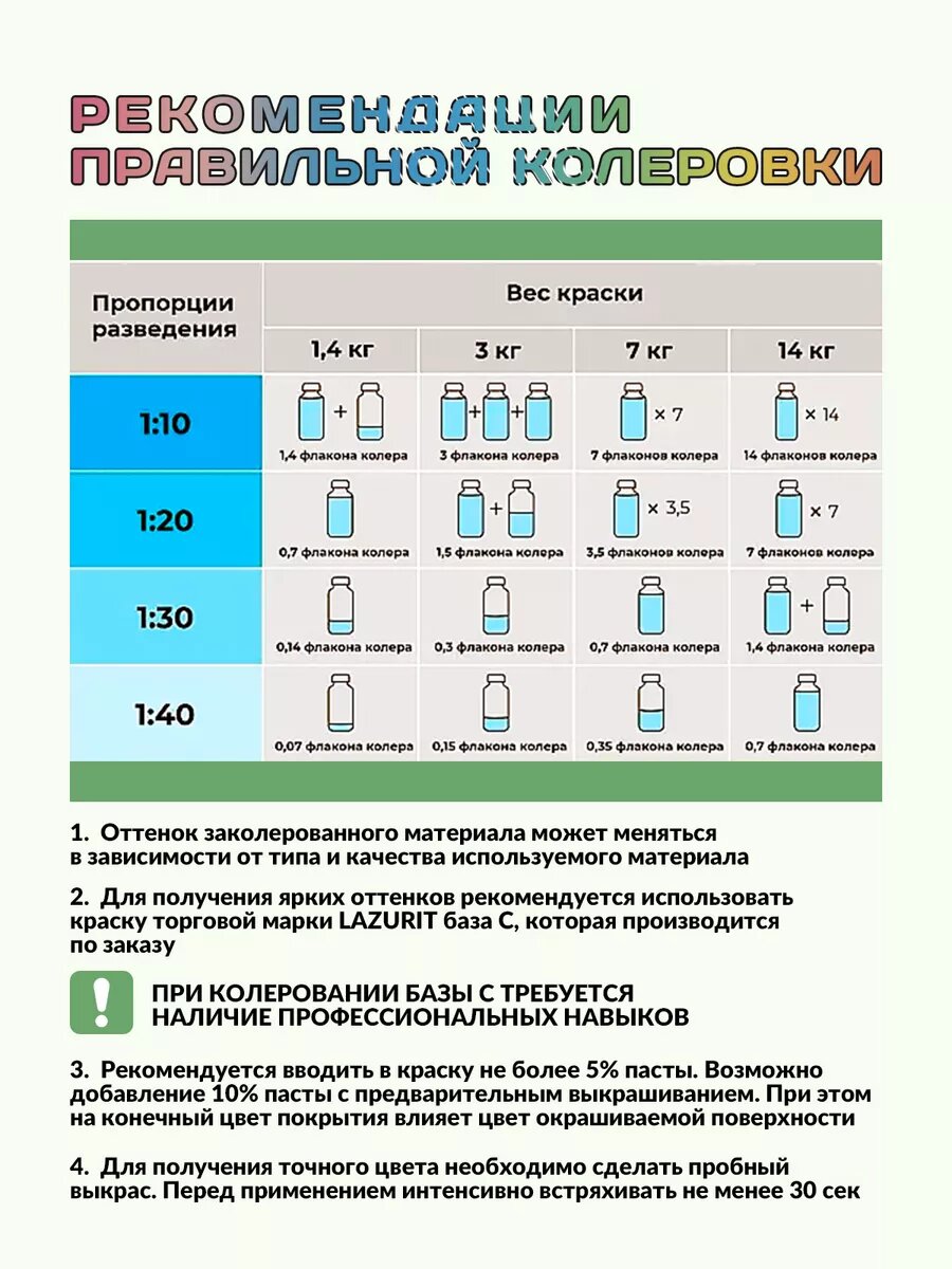 | Вид колера | колеровочная паста |