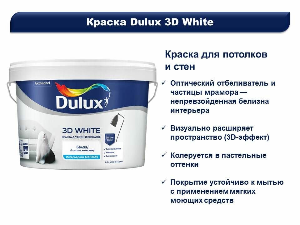 Краска DULUX 3D White BW матовая 2,5 л NEW