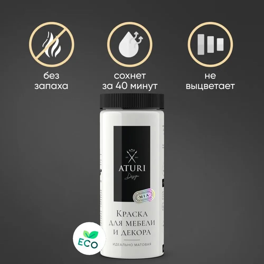 Краска Aturi Design Краска для мебели и декора. Без запаха. Цвет: Черный бархат. Быстросохнущая. Матовая, 0,4 кг, Черный