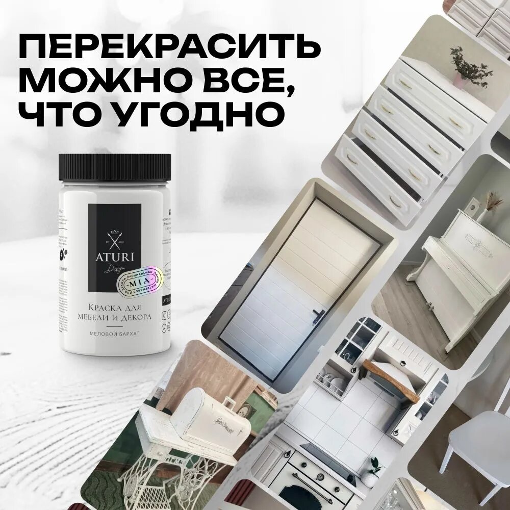 Краска Aturi Design Mia для мебели и декора, меловой бархат; Цвет: Белоснежный, 1570гр