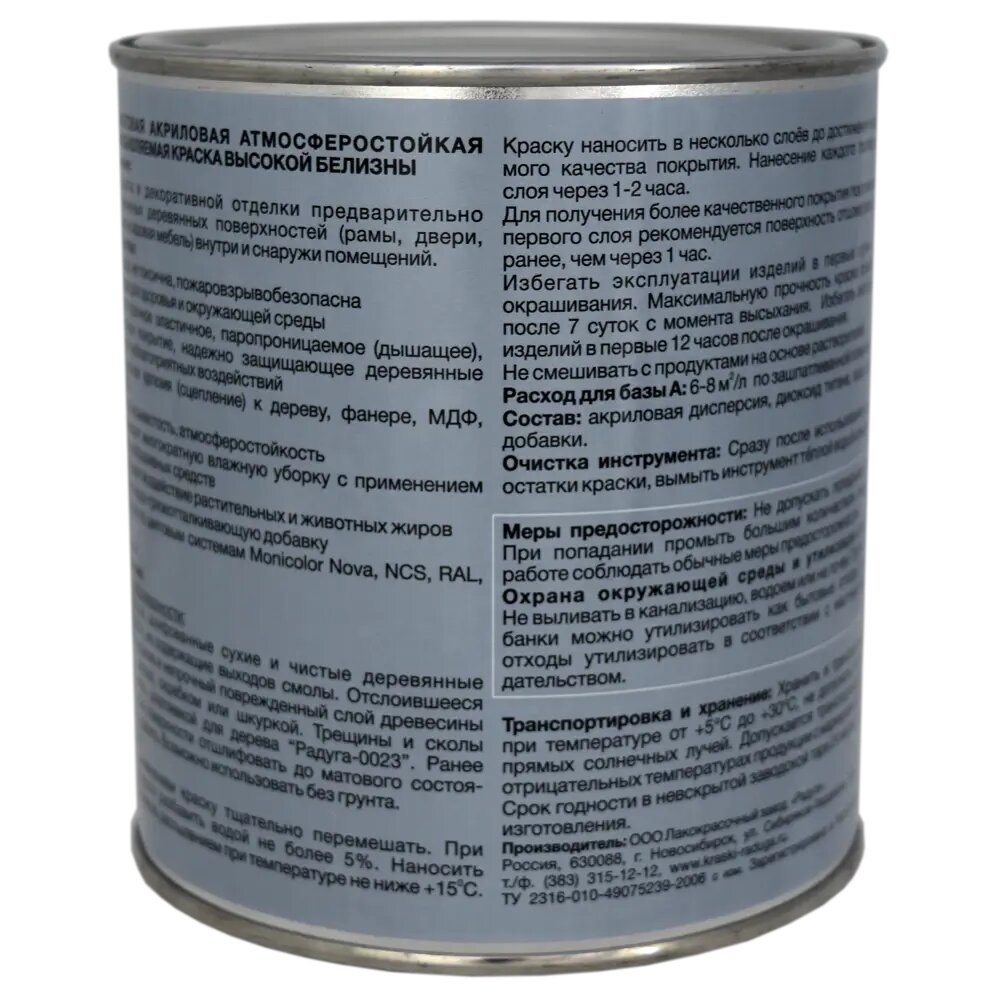 | Дополнительная информация | Краска для мебели Радуга матовая цвет прозрачный 0.9 л |