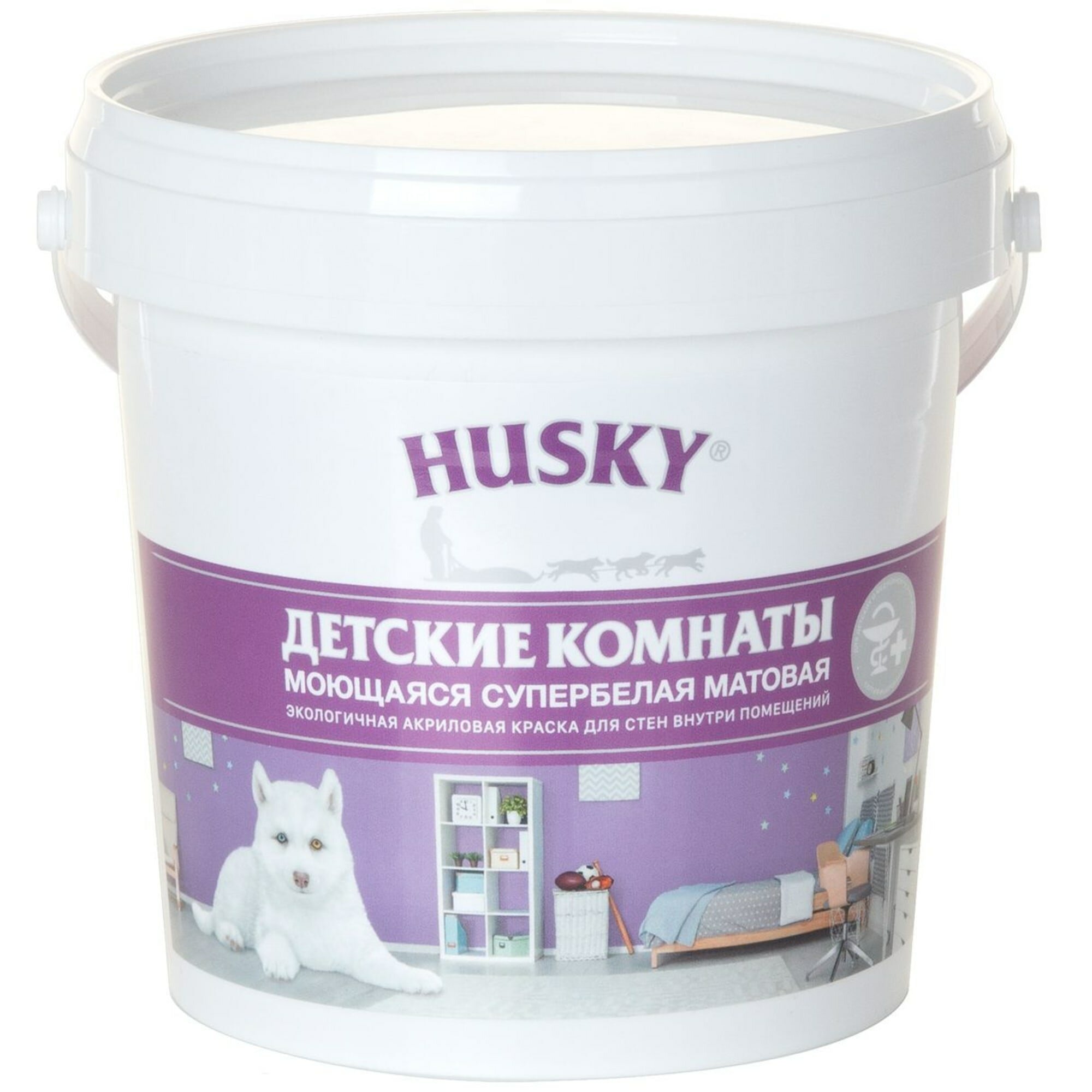 Краска акриловая для детских комнат HUSKY 0,9л белый