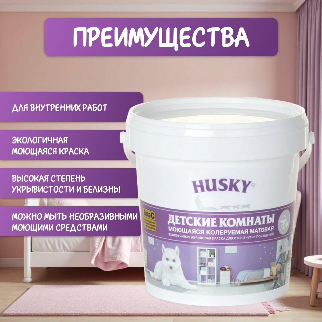 Краска для детских комнат HUSKY матовая База С (0,9л)