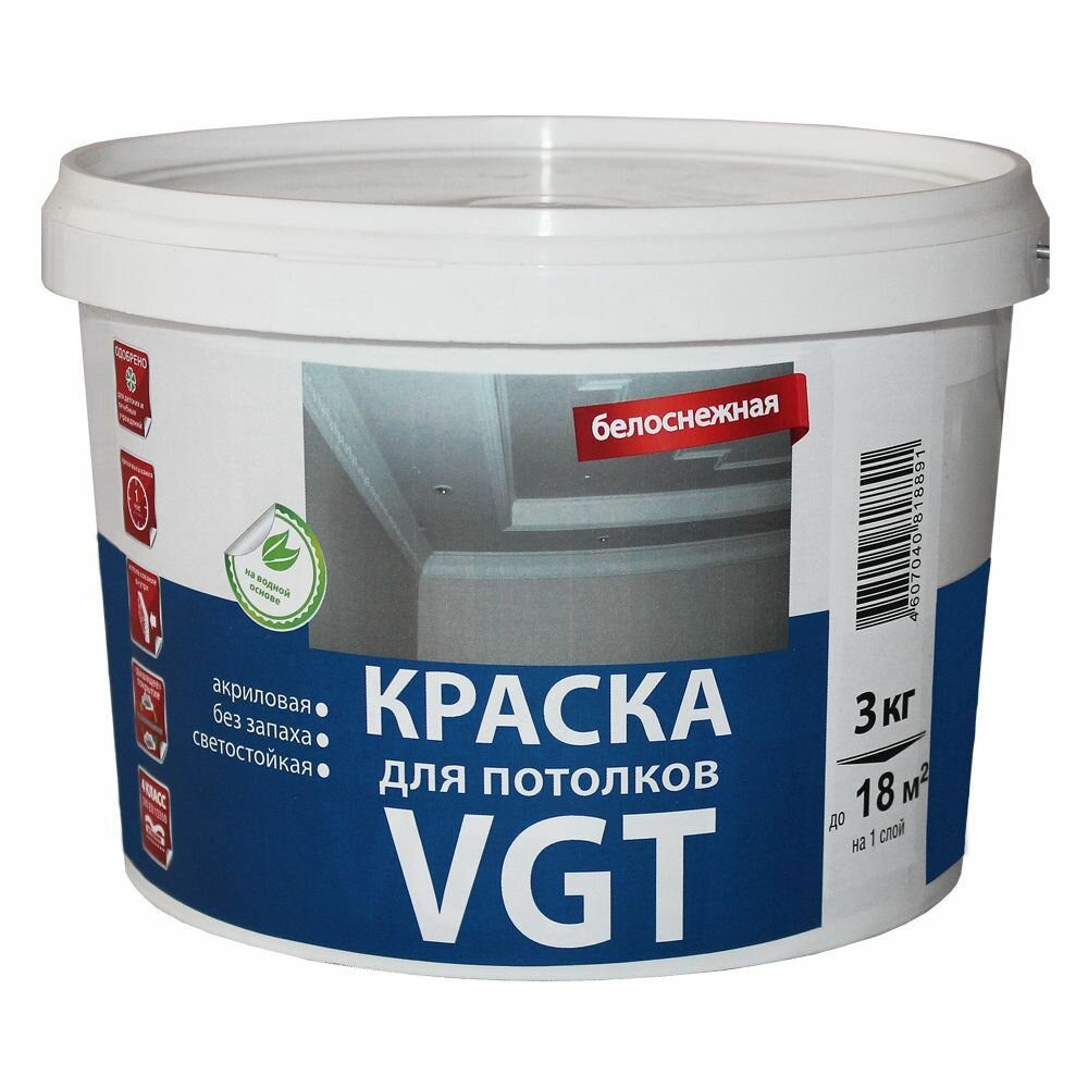 Краска акриловая для потолков ВД-АК-2180 VGT Белоснежная матовая (3кг)