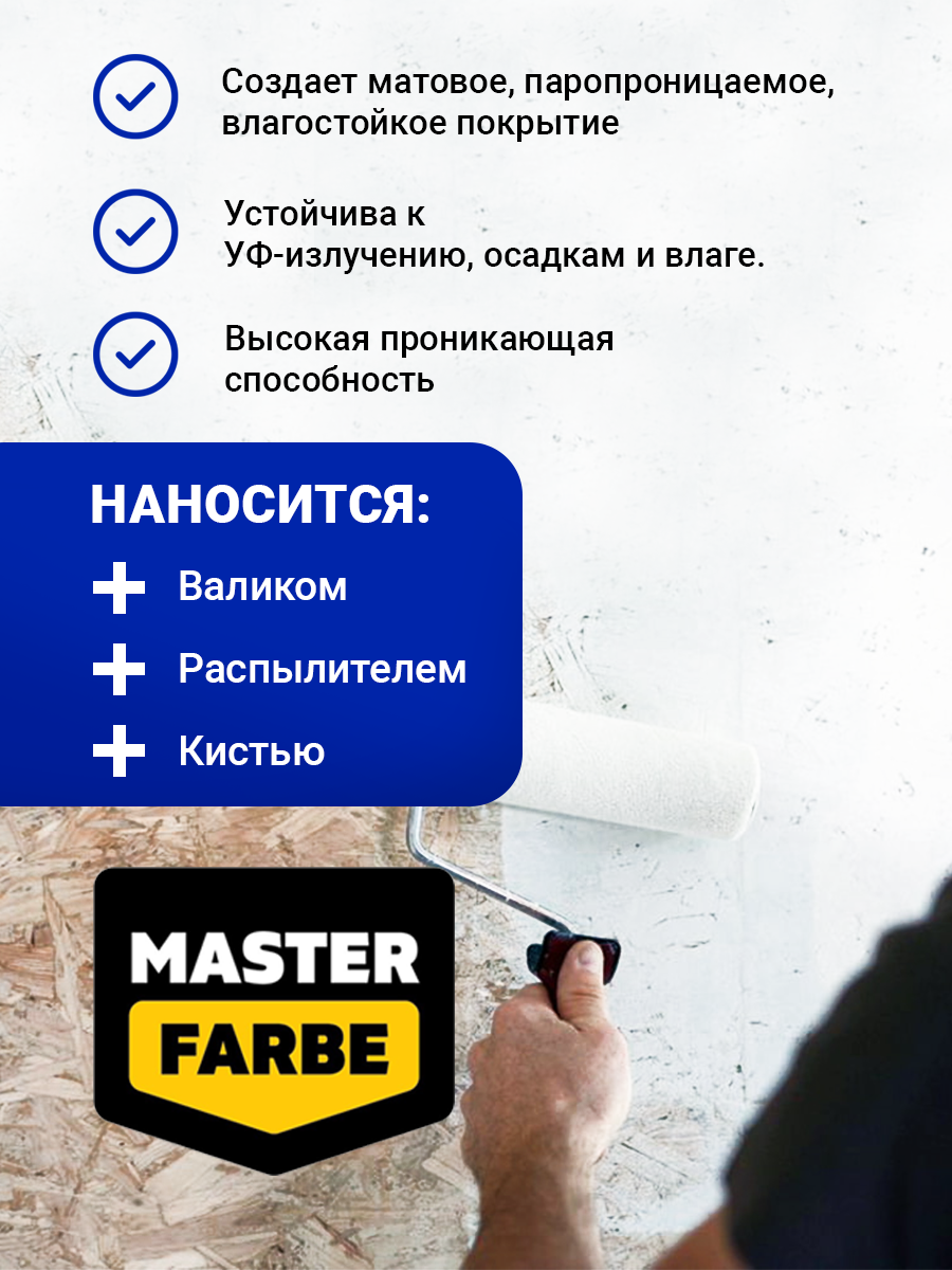 Краска акриловая MASTER FARBE супербелая для OSB плит, Матовое покрытие, 14 кг, белый