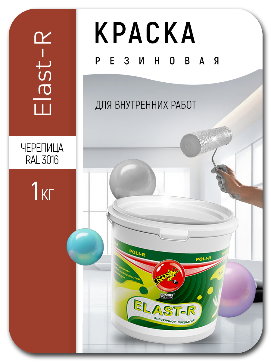 Резиновая Краска Эластичная Polir-R Elast-R 3кг Рубиновый Красный RAL 3003 для Ванных Комнат, Влажных Помещений, Потолков, Стен, Заборов, Фасадов, Крыш.