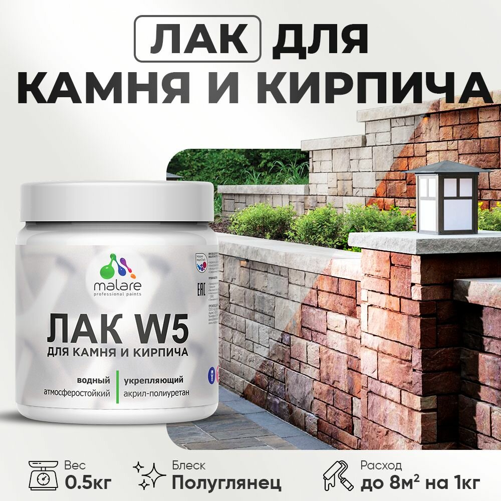 Купить Лак для камня и кирпича Malare Professional для дерева и минеральных поверхностей, водный без запаха быстросохнущий полуглянцевый, бесцветный, 0.5 кг.