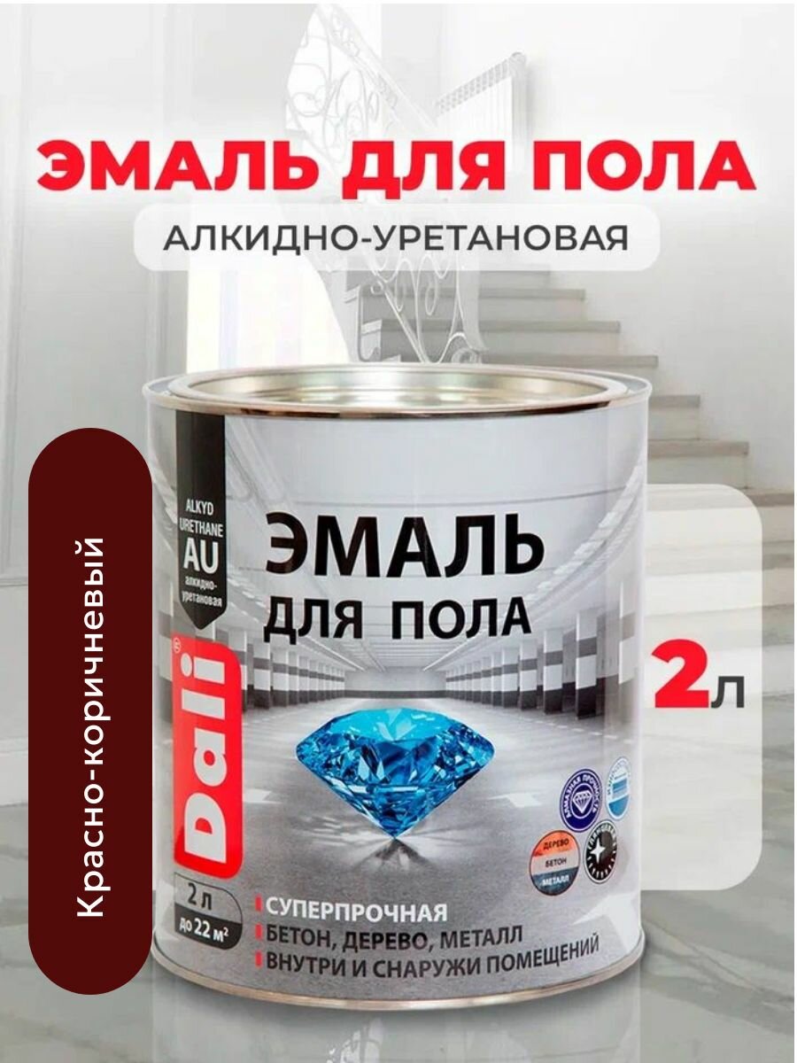 Dali / Дали Эмаль для пола алкидно-уретановая моющаяся 2л красно-коричневый
