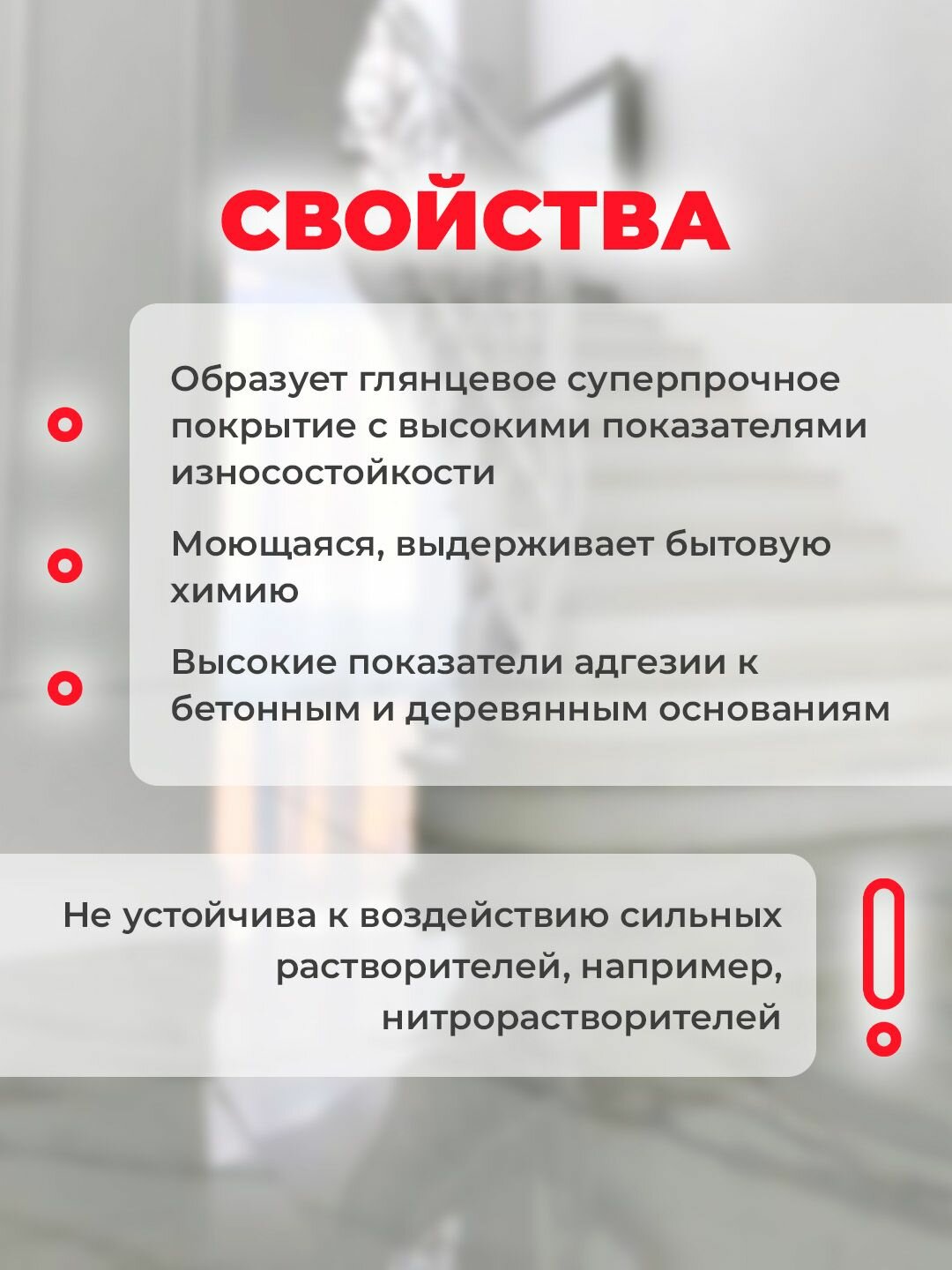 | Область применения | для гаражей / для мебели / для пола / для стен / для ступеней / эмаль |