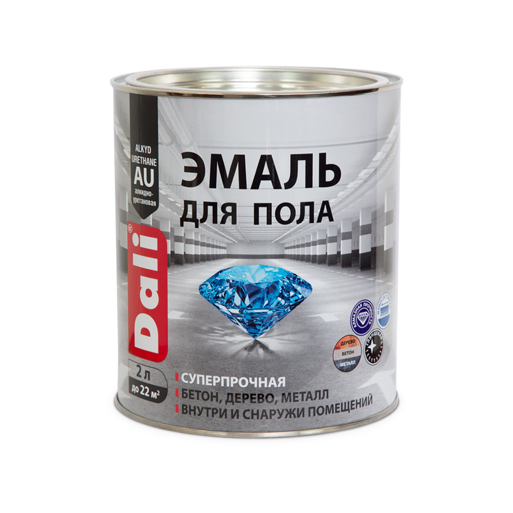 Эмаль для пола Dali, алкидно-уретановая, глянцевая, серая, 2 л