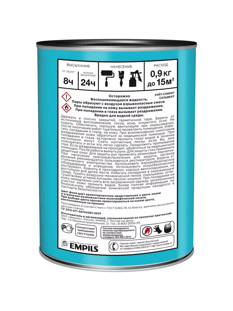 | Дополнительная информация | Для окрашивания деревянных, металлических, минеральных поверхностей снаружи и внутри помещений, кроме пола, также возможно нанесение на ранее окрашенные, в том числе алкидными материалами, поверхности. Может применяться для окрашивания цокольных этажей, крыш с минеральным и металлическим покрытием. Перед нанесением эмали на металл необходимо предварительное грунтование поверхности. Эмаль в соответствии с техническими и технологическими характеристиками рекомендуется к применению в детских комнатах, дошкольных, школьных, лечебно-профилактических учреждениях и предприятиях общественного питания. |