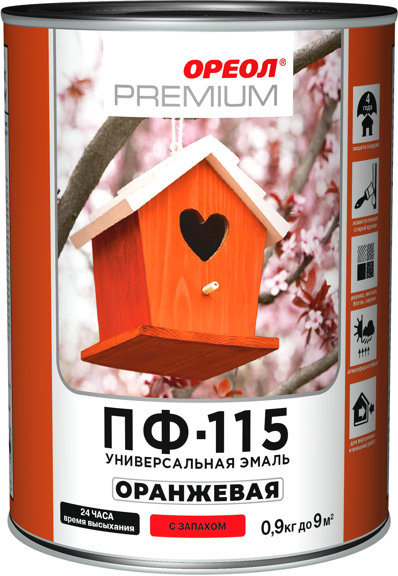 Эмаль Ореол Premium ПФ-115 глянцевая цвет оранжевый 0.9 кг