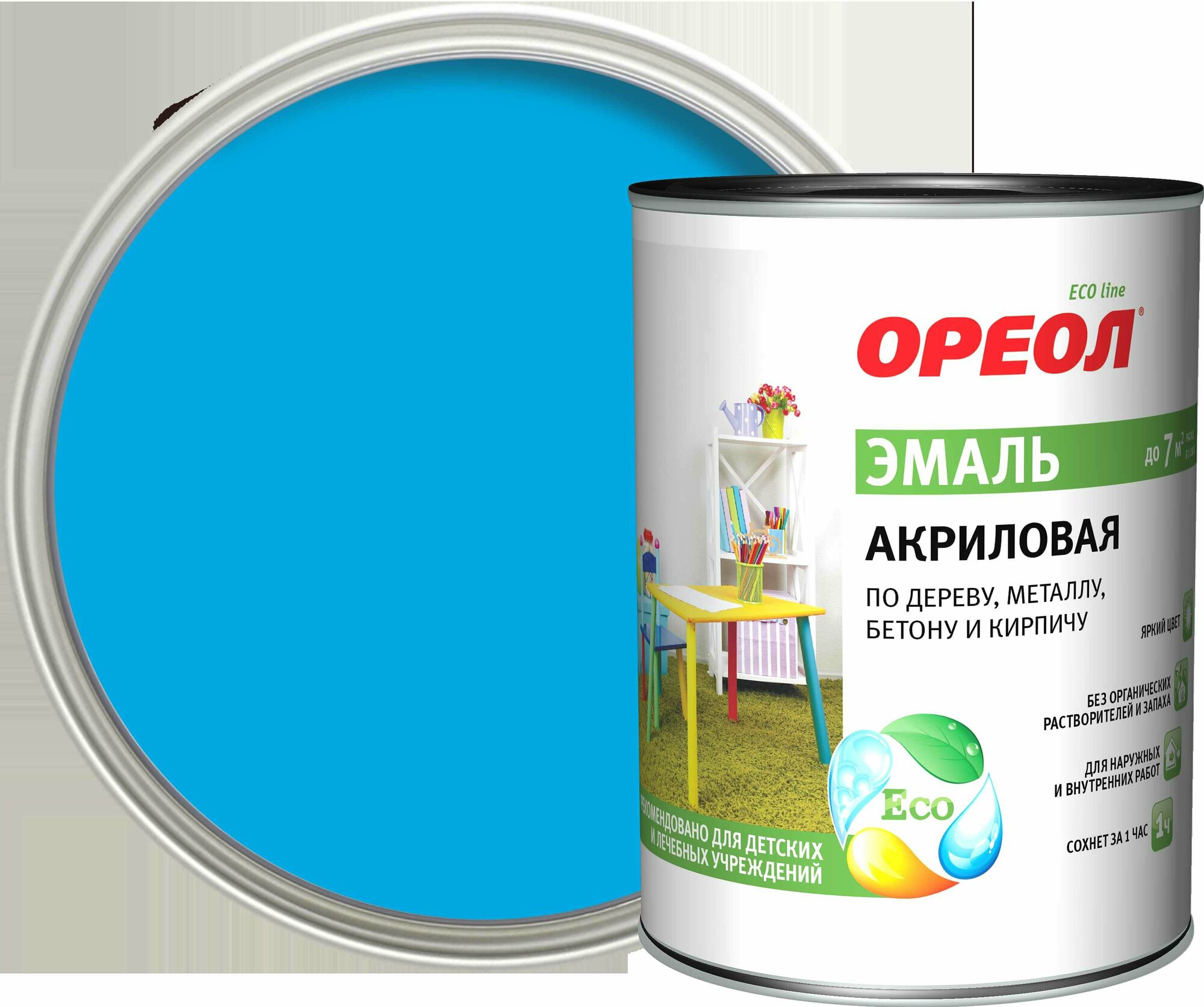 Эмаль Ореол, для внутренних и наружных работ, акриловая, глянцевая, голубая, 0.9 кг