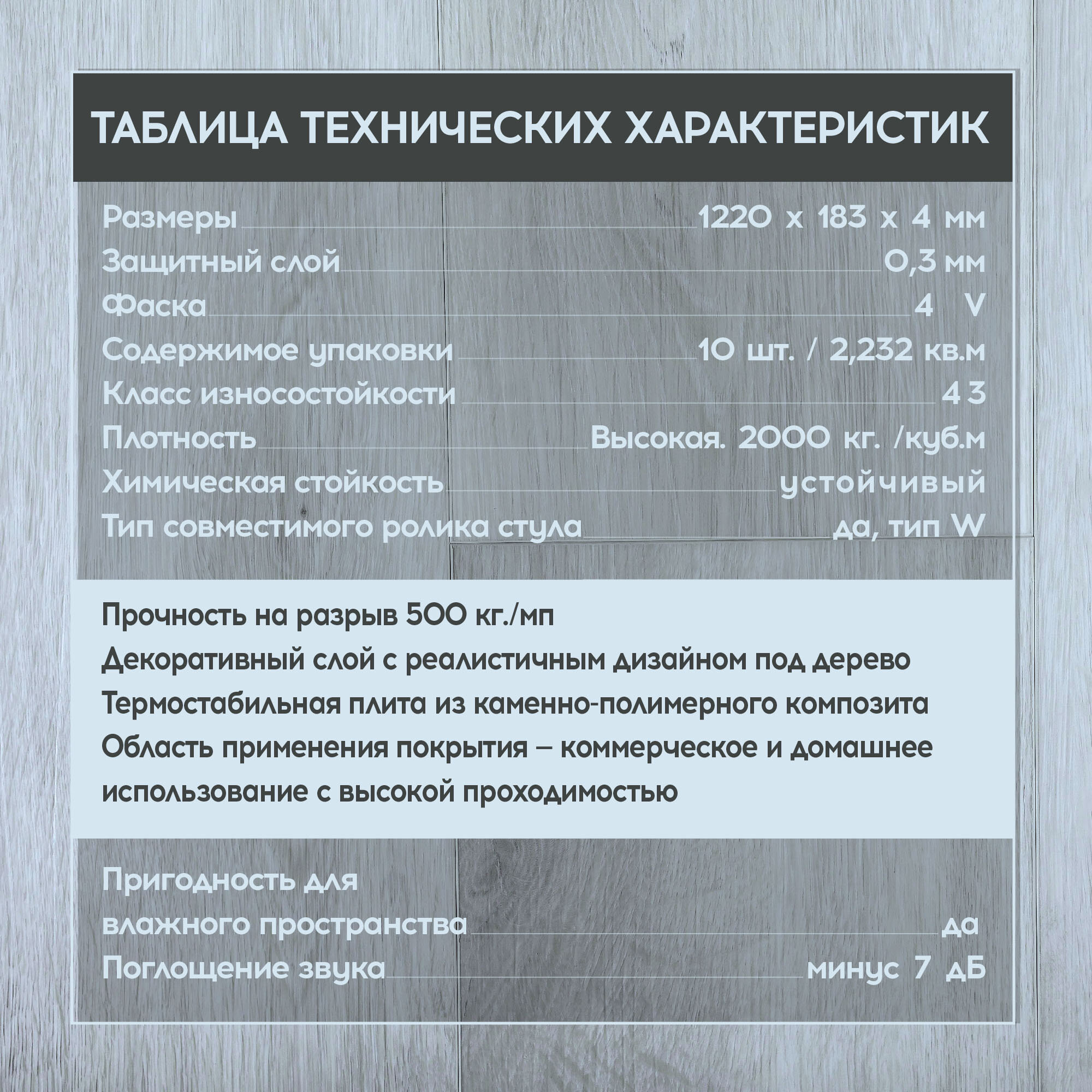 SPC плитка Linderwood Болу 43 класс толщина 4 мм 2.23 м², цена за упаковку