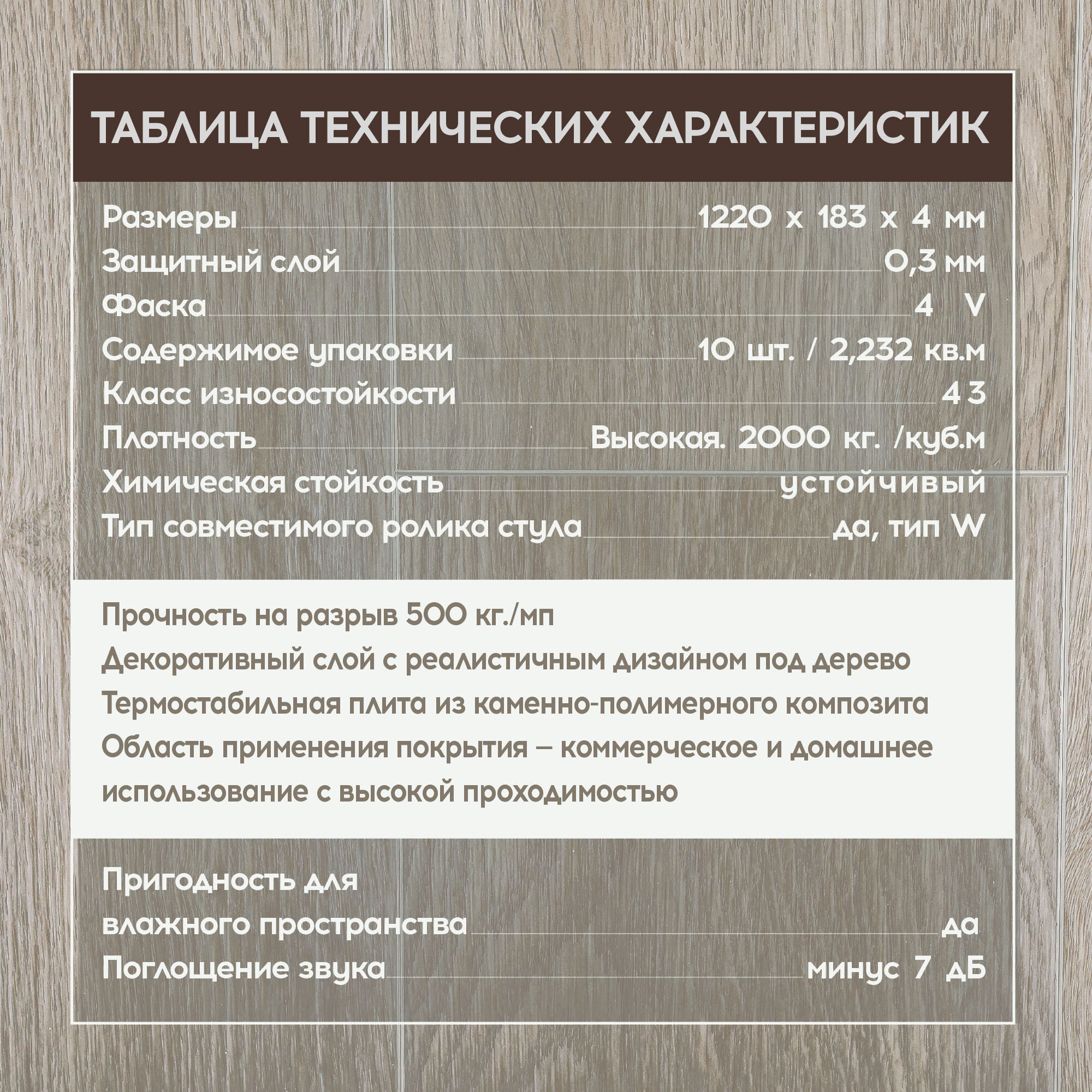 SPC плитка Linderwood Болу 43 класс толщина 4 мм 2.23 м², цена за упаковку