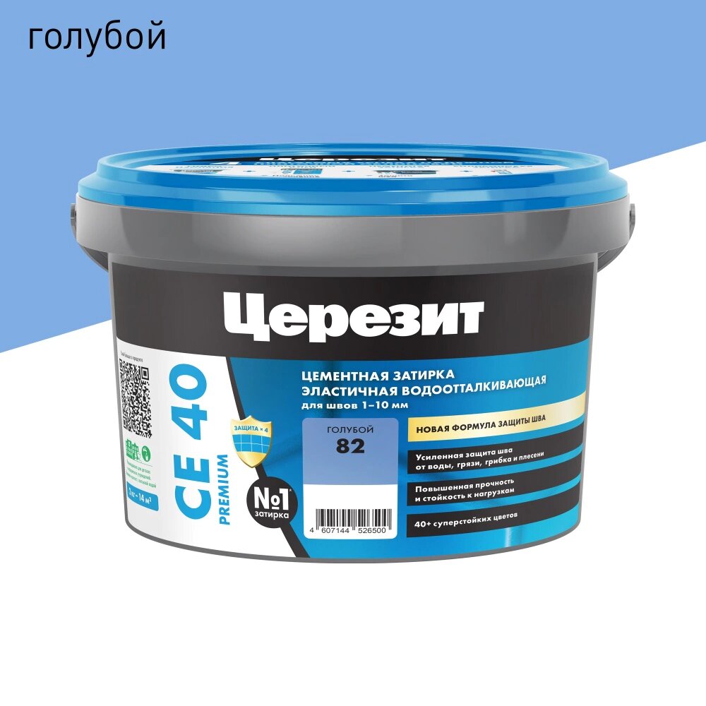 Купить Затирка цементная водоотталкивающая Церезит CE 40, цвет Голубой, (2 кг)