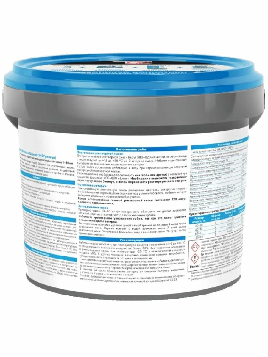CERESIT CE 40 группа №1 эластичная затирка для швов с антигрибковым эффектом, серый (2кг)