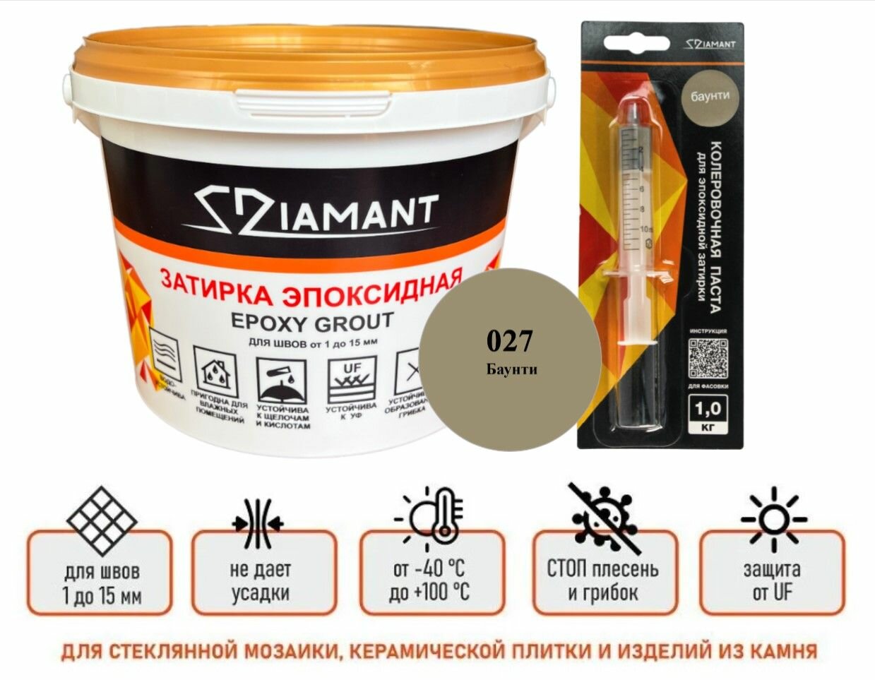 Ниже Вы можете прочитать отзывы на Затирка эпоксидная Диамант (Diamant) 027 баунти 1 кг, ознакомится с подробными характеристиками, посмотреть интересные обзоры и фотографии на Затирка эпоксидная Диамант (Diamant) 027 баунти 1 кг.