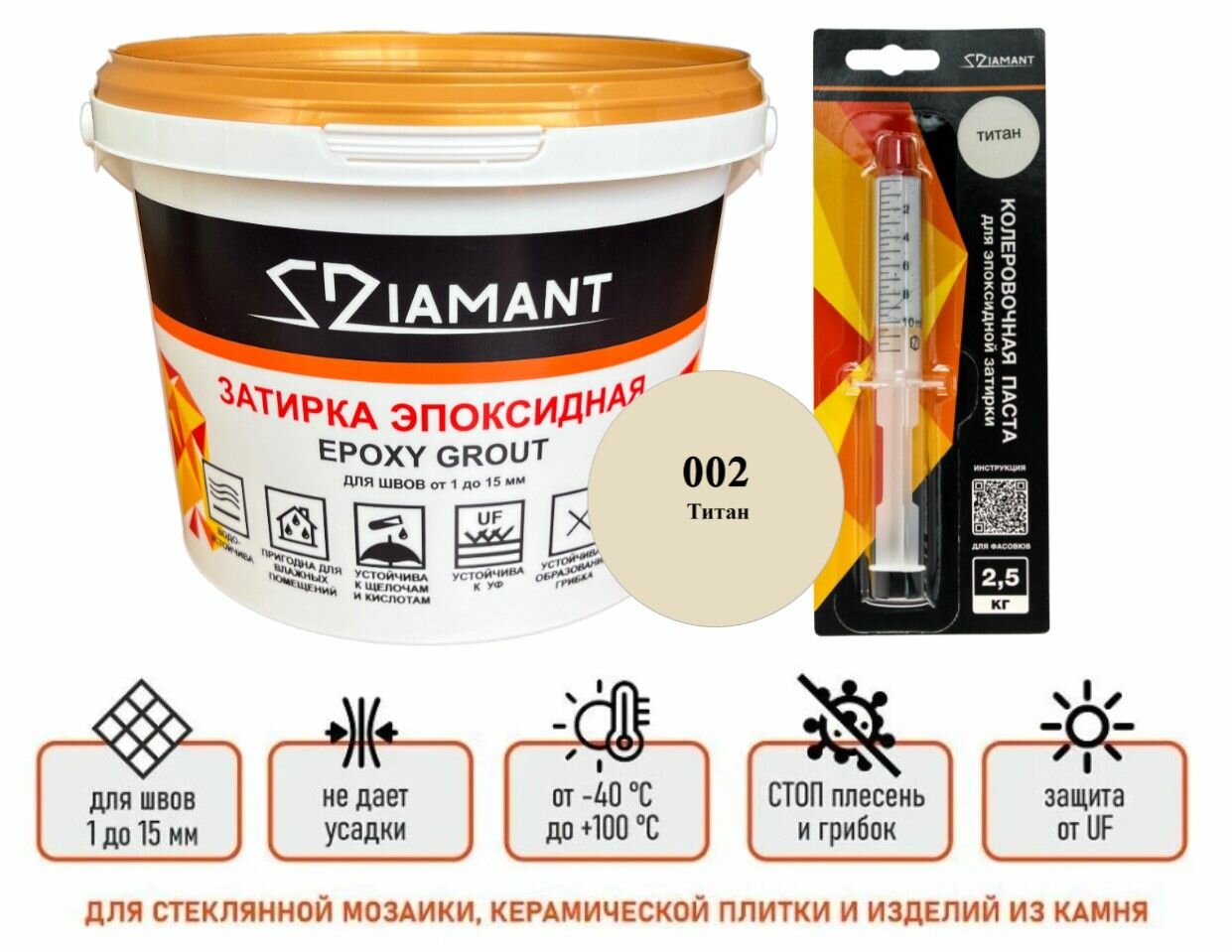 Затирка эпоксидная Диамант NEW, титан 002, 1 кг, комплект