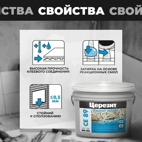Затирка для швов Церезит СЕ 89 эпоксидная от 1 до 15 мм, эластичная, водоотталкивающая 2,5 кг серый 807