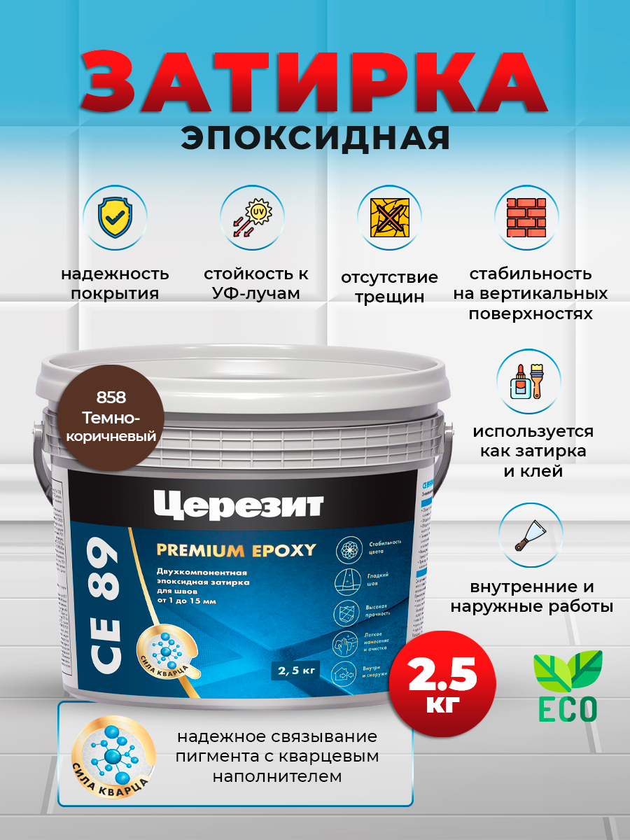 Купить Затирка для плитки эпоксидная Церезит CE 89 №858, темно-коричневая, 2,5 кг