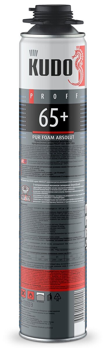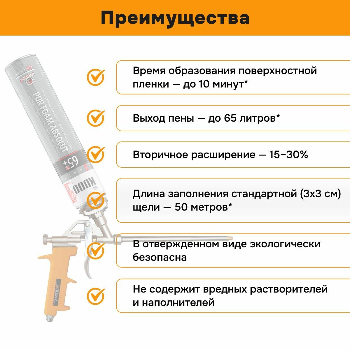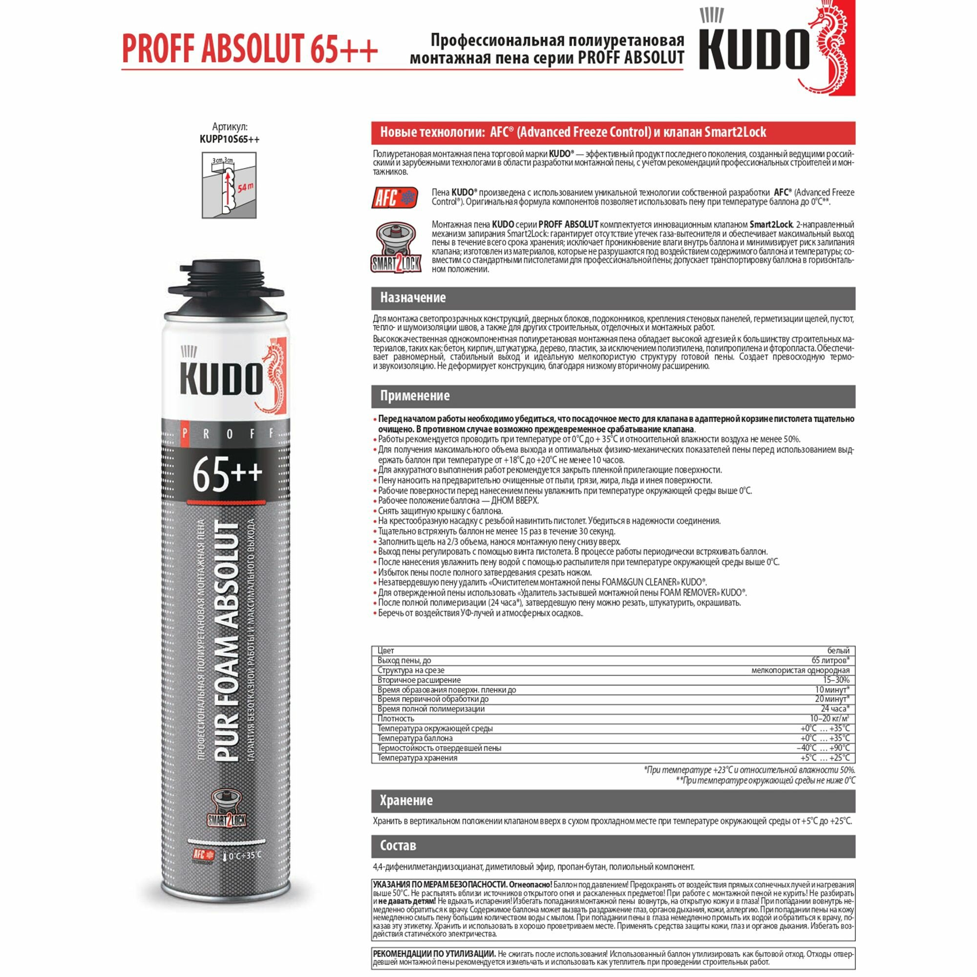 Кудо Профф 65+ пена монтажная профессиональная (1л) / KUDO Proff 65+ пена профессиональная полиуретановая монтажная (1л)