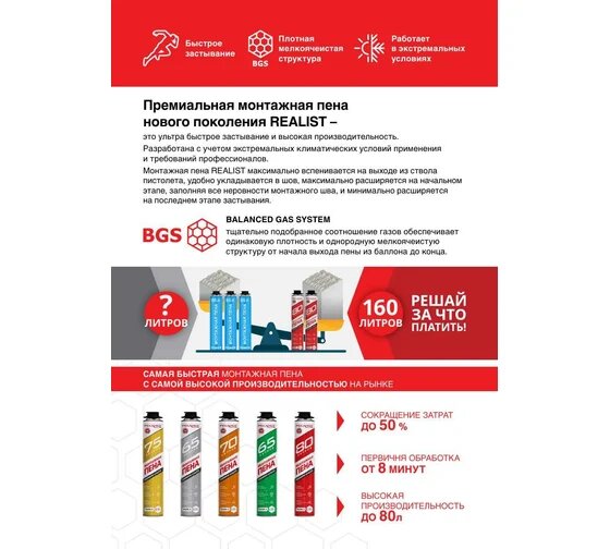 Зимняя пена монтажная REALIST PRO Gold интересное: