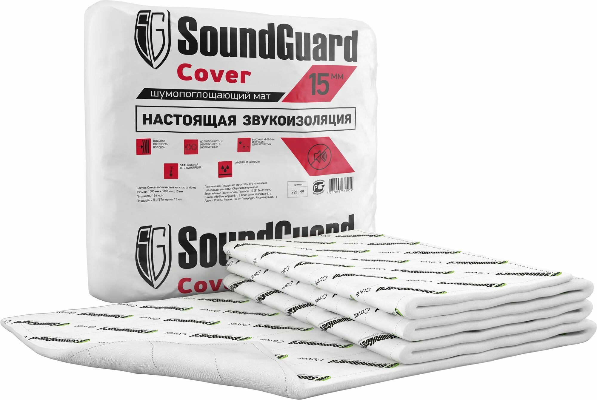 Мат звукоизоляционный SoundGuard Cover 15 мм 1,5х5 м интересное: