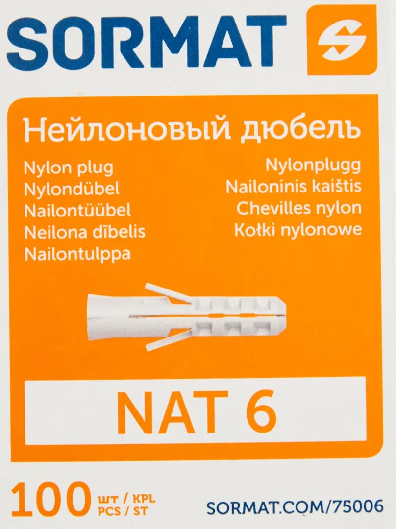 Купить Дюбель распорный для полнотелых материалов Sormat NAT нейлон 6x30 мм 100 шт.