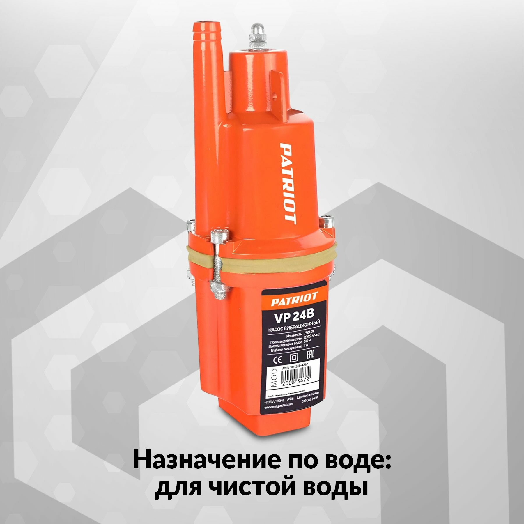 Насос для воды погружной водяной вибрационный PATRIOT VP 24А, 300Вт