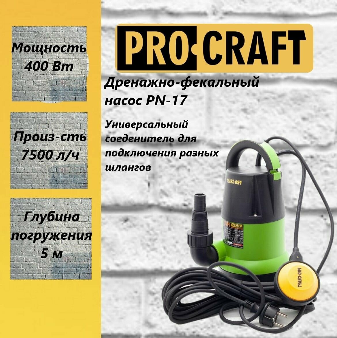 Насос погружной дренажный Procraft PN17 (125 л/мин, погружение 5м, напор 5м )