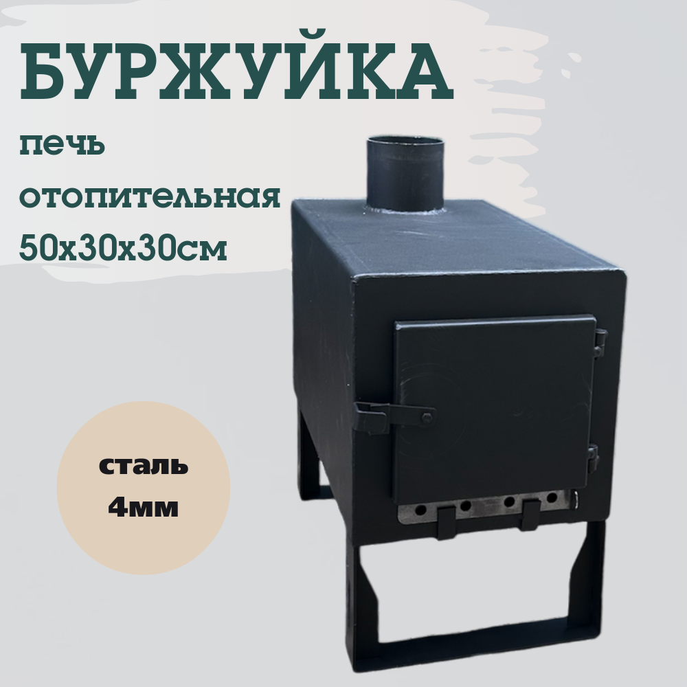Печь отопительная буржуйка 50х30х30 см, сталь 4мм. интересное: