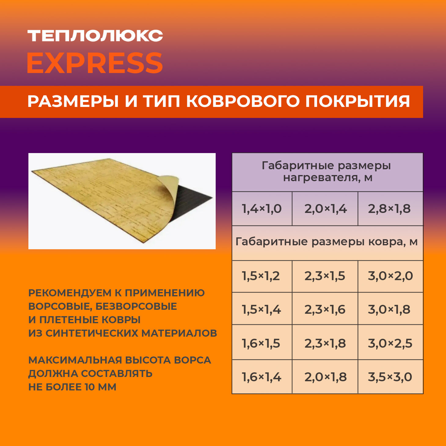 Мобильный теплый пол, Теплолюкс, Express, 1.4 м2, 100х140 см